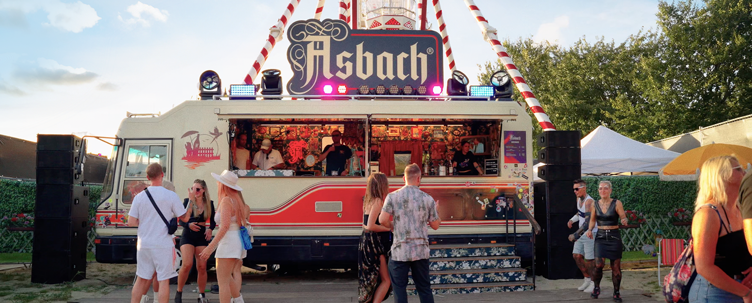 Der Camper besitzt alles, was wir für eine unvergessliche Brand-Experience benötigen: eine stylische Bar, Sound, Licht und eine abgefahrene Innenausstattung, die Asbach mit Good Vibes und viel Coolness auflädt.