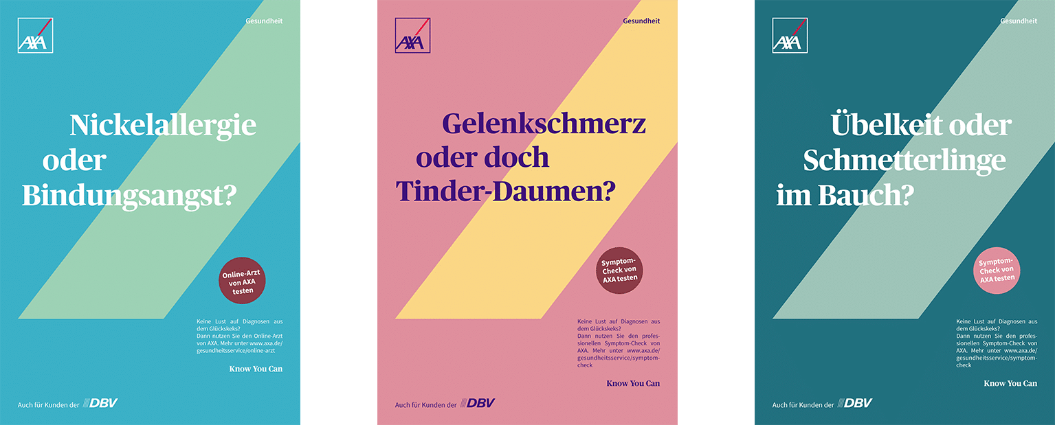 Doch für diese spannenden Services geht AXA auch in der Kommunikation weiter als jemals zuvor: mit mutigen Lines, ungewöhnlichen Farbwelten und einer sehr jungen Ansprache – denn „DHS“ ist anders, genau wie unsere Kommunikation für die Services.