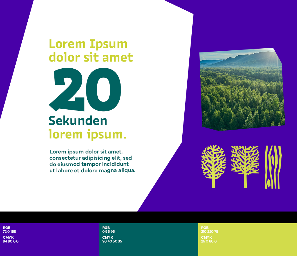 Unser erster Schritt: die Entwicklung einer eigenen Marke und eines mitreißenden Claims. Unter "Holz rettet Klima" bündeln wir alle Maßnahmen unserer Initiative und sorgen mit Claim, Logo und einer prägnanten Corporate Identity mit ungewöhnlicher Farbgebung dafür, dass sich das Engagement auch visuell einprägt und schnell wiedererkannt wird.