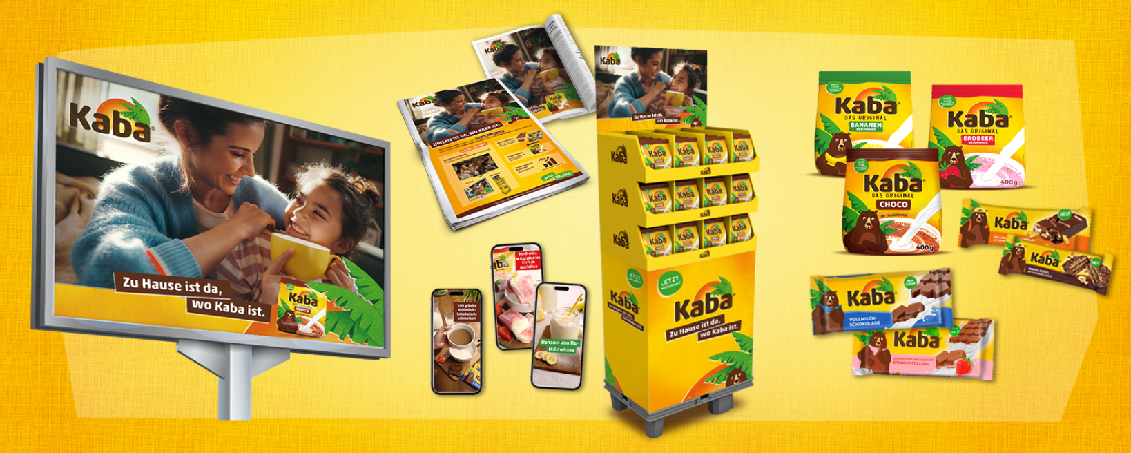 Die Kampagne bringt das „Zuhause ist da, wo Kaba ist“-Gefühl in alle Kanäle: Von aufmerksamkeitsstarken OOH-Motiven über Anzeigen bis zu Social Media wird die emotionale Kommunikation durch den Packaging-Relaunch perfekt unterstützt.