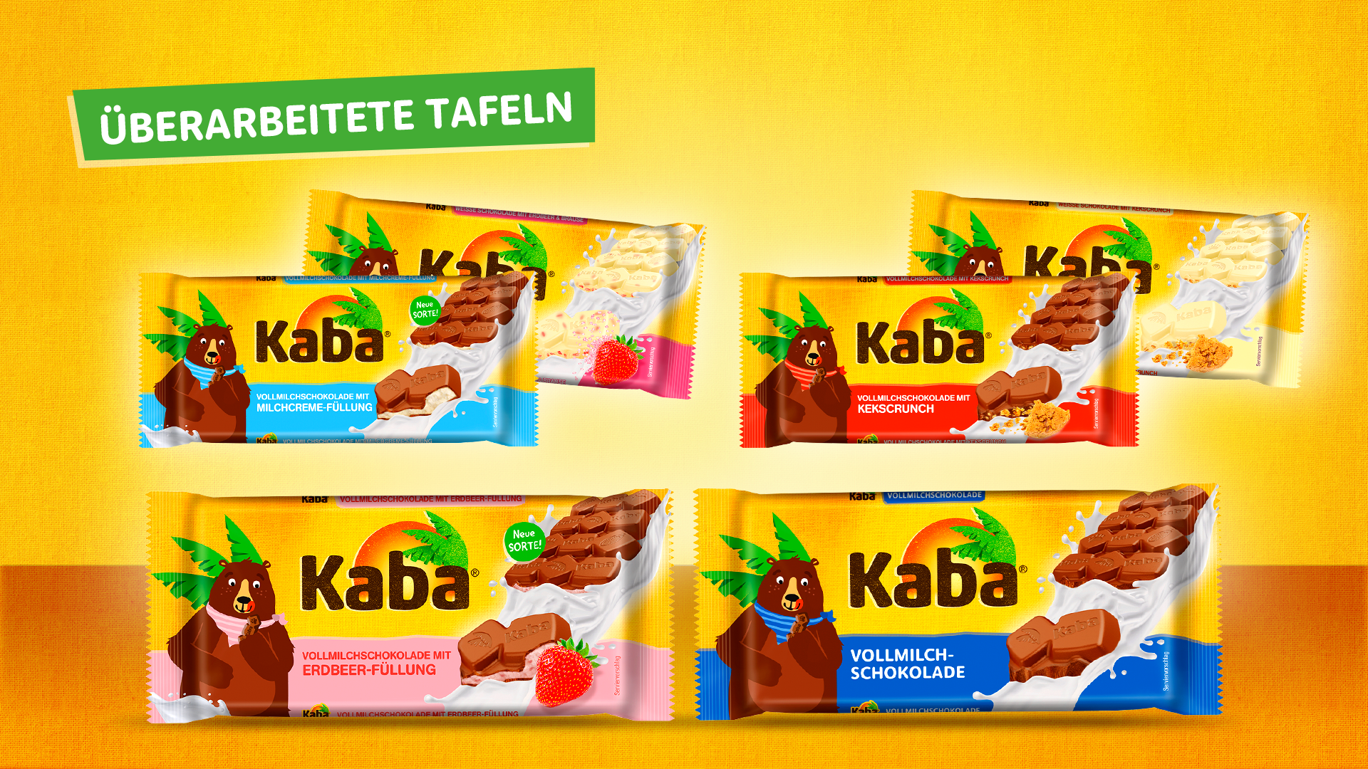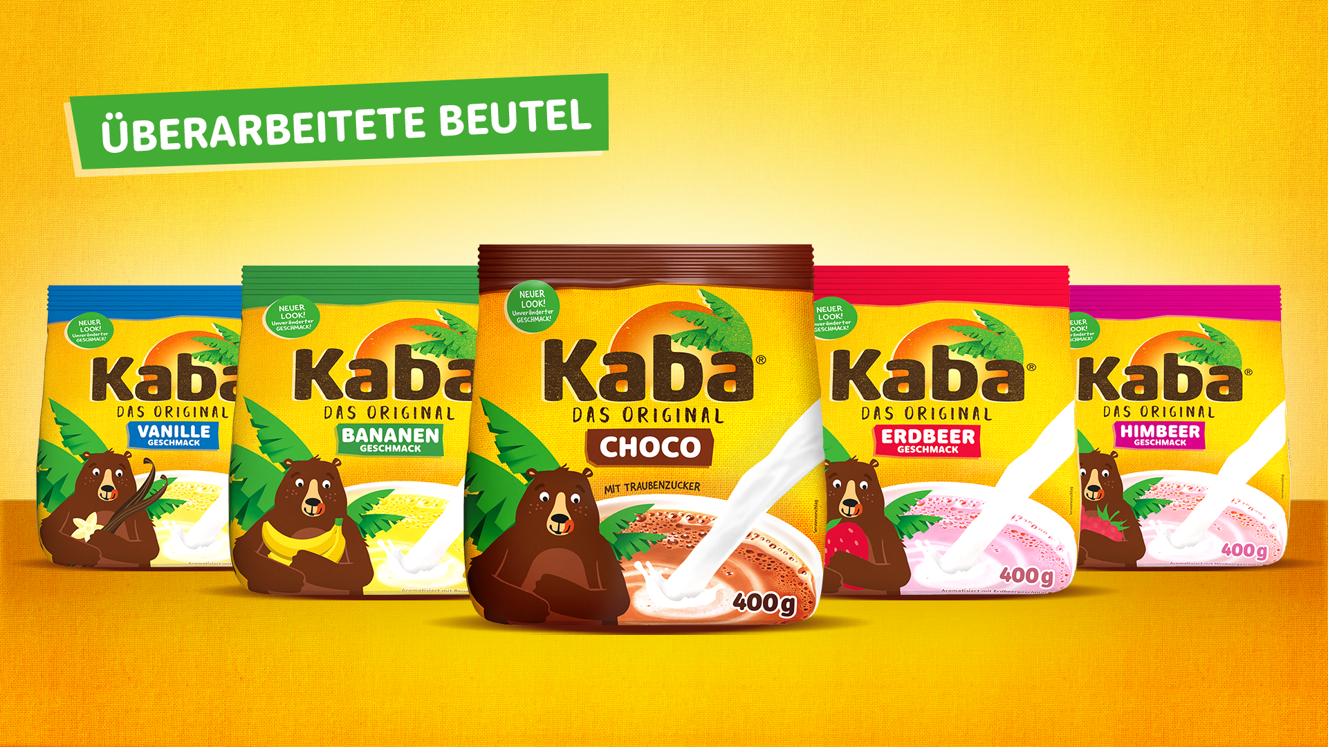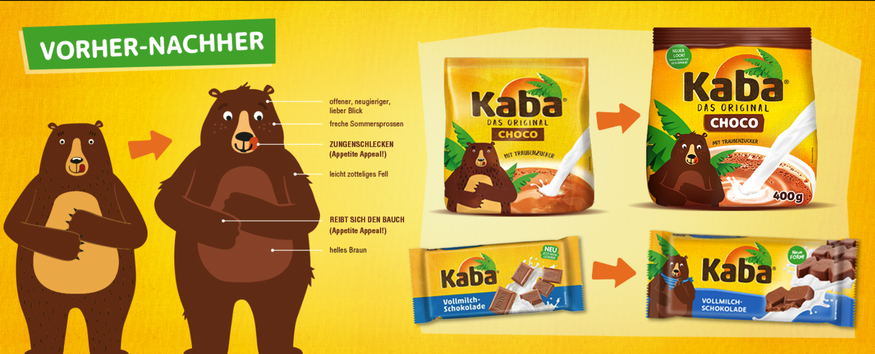 Der wichtigste Touchpoint für unser „Zuhause-Gefühl“: das Packaging. Daher bekommt der beliebte Kaba Bär ein kleines Facelift und erhält so ein wenig mehr Freundlichkeit und Neugierde – bleibt aber wunderbar vertraut. Auch die Wort-Bild-Marke wurde – passend zum Relaunch – modernisiert.
