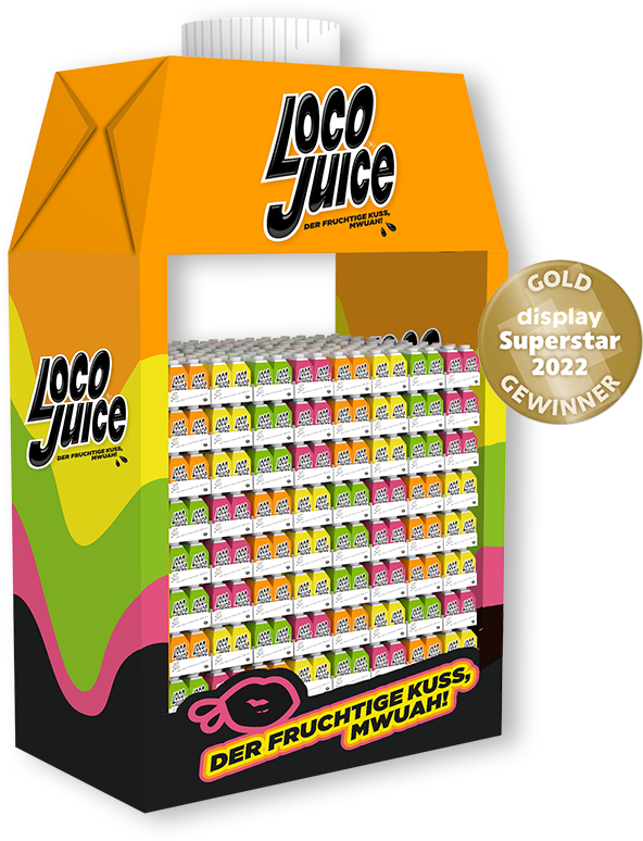 Viele wollen es, er hat es: Der Kult-Rapper Luciano hat seinen eigenen Saft herausgebracht! Die vier freshen Sorten mussten natürlich aufmerksamkeitsstark am POS inszeniert werden. Frei nach dem Motto „Product is Hero“ wurde ein Display in Anlehnung an Packung und Farbgebung entwickelt. Bunt, knallig und auffällig, damit die Zielgruppe, die Luciano am gesamten Entwicklungsprozess hat teilhaben lassen, es am POS auch garantiert findet.