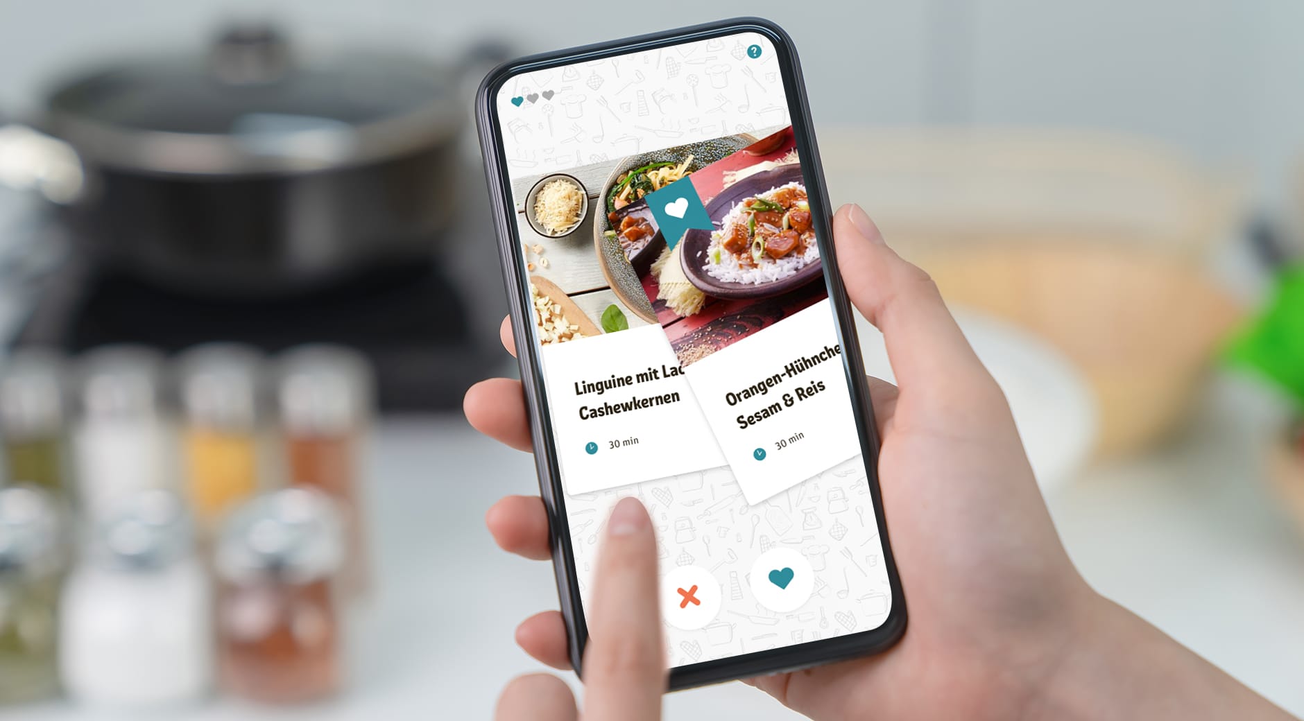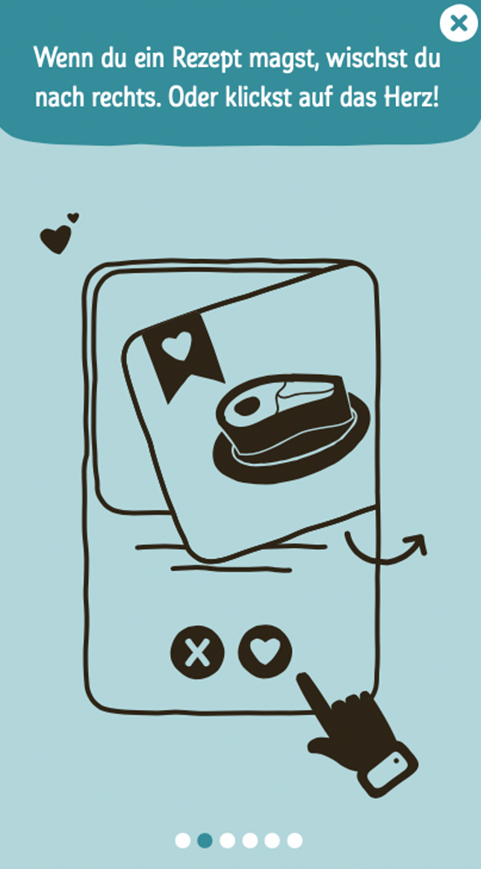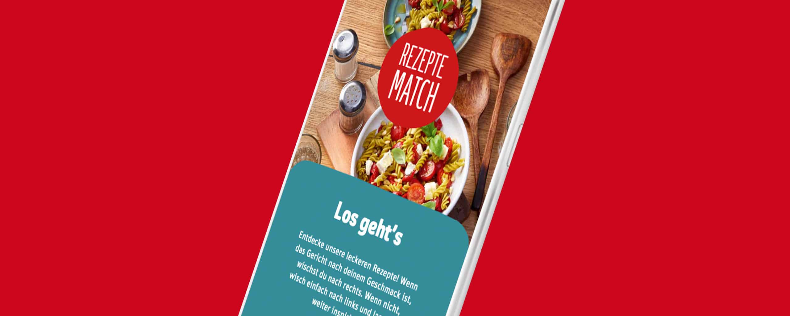 In Anlehnung an die gelernte Funktionalität der beliebten Dating-App, basiert REWE Rezepte-Match auf personalisierten Rezeptempfehlungen, die durch Liken und Disliken von Rezepten herausgefiltert werden. Schon nach drei gelikten Rezepten schlägt der Algorithmus Rezepte vor, die dem User garantiert schmecken.