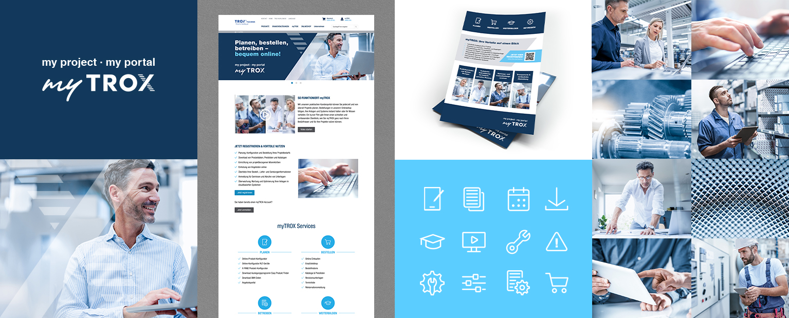 Im Rahmen der Kampagne haben wir die Landingpage von myTROX neugestaltet und die Inhalte optimiert, um die Nutzerorientierung zu erhöhen. Die Icons wurden ebenfalls überarbeitet und an das neue Design angepasst. Ergebnis: mehr Übersichtlichkeit und ein einheitliches Erscheinungsbild.