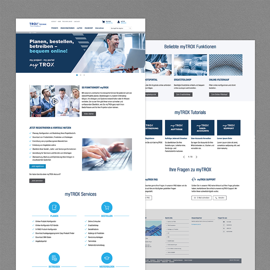 Das Onlineportal myTROX ist in zahlreichen Ländern und Sprachen verfügbar. Daher musste das von uns entwickelte Master-Design so gestaltet sein, dass es sich mühelos für die Image- und Sales-Kommunikation anpassen lässt.