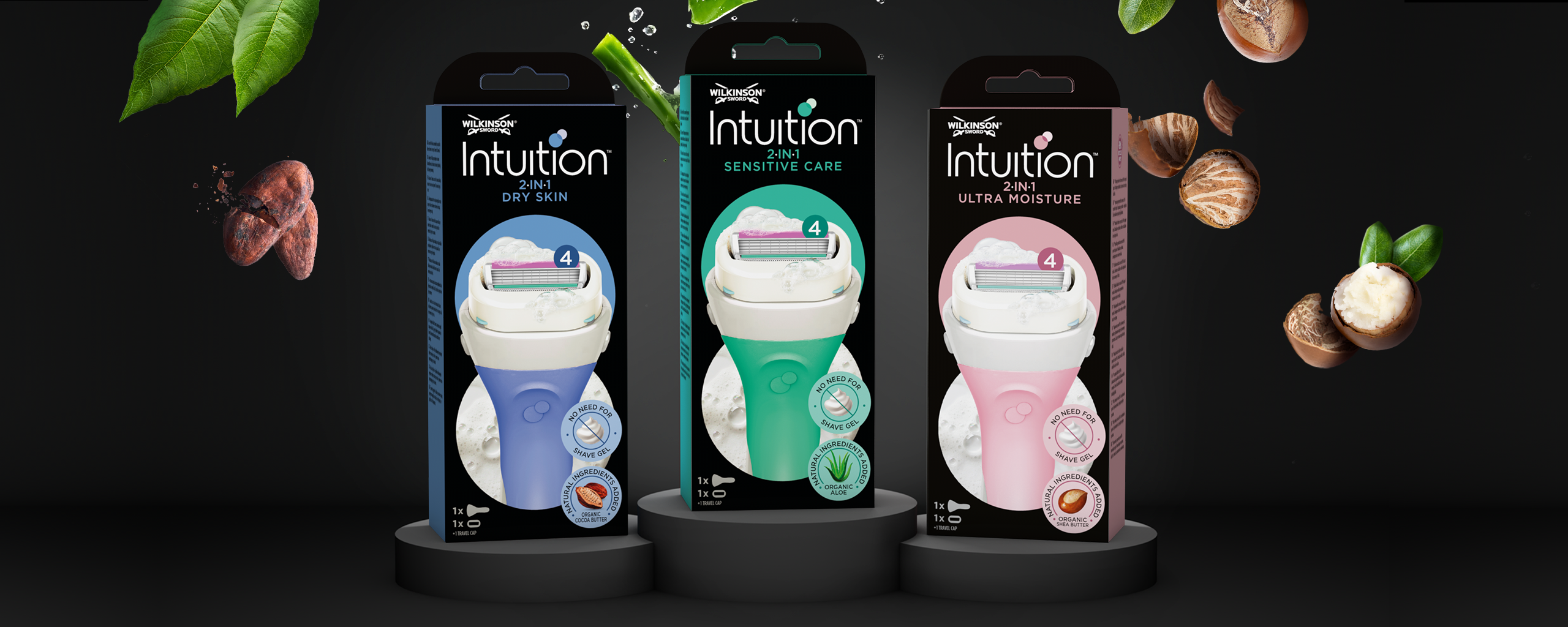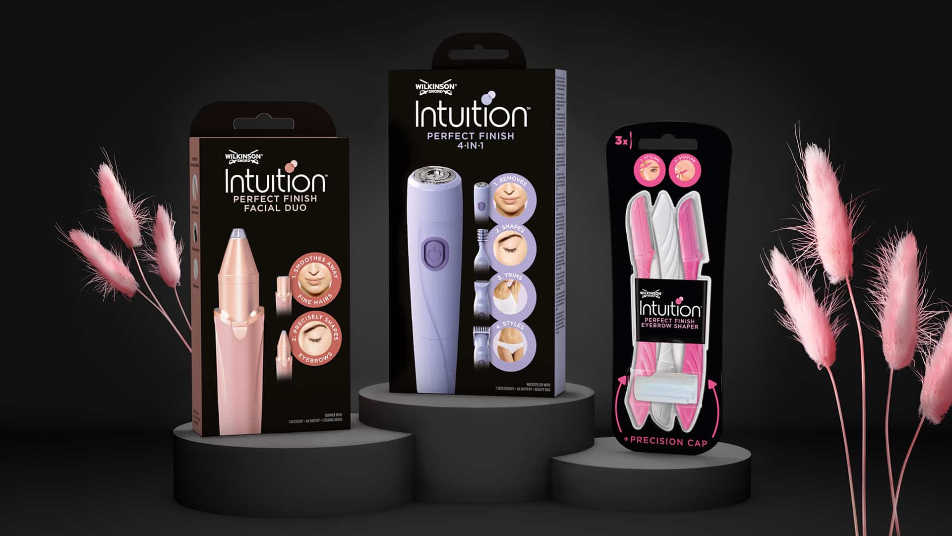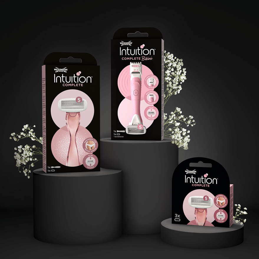 Die Auswahl an Damenrasieren bei unserem Kunden Wilkinson ist groß! Um den Verwenderinnen mehr Orientierung zu bieten, wurden verschiedene Sub Brands unter der Dachmarke Intuition vereint. Wir haben für einen konzeptionell schlüssigen und einheitlichen Auftritt gesorgt.