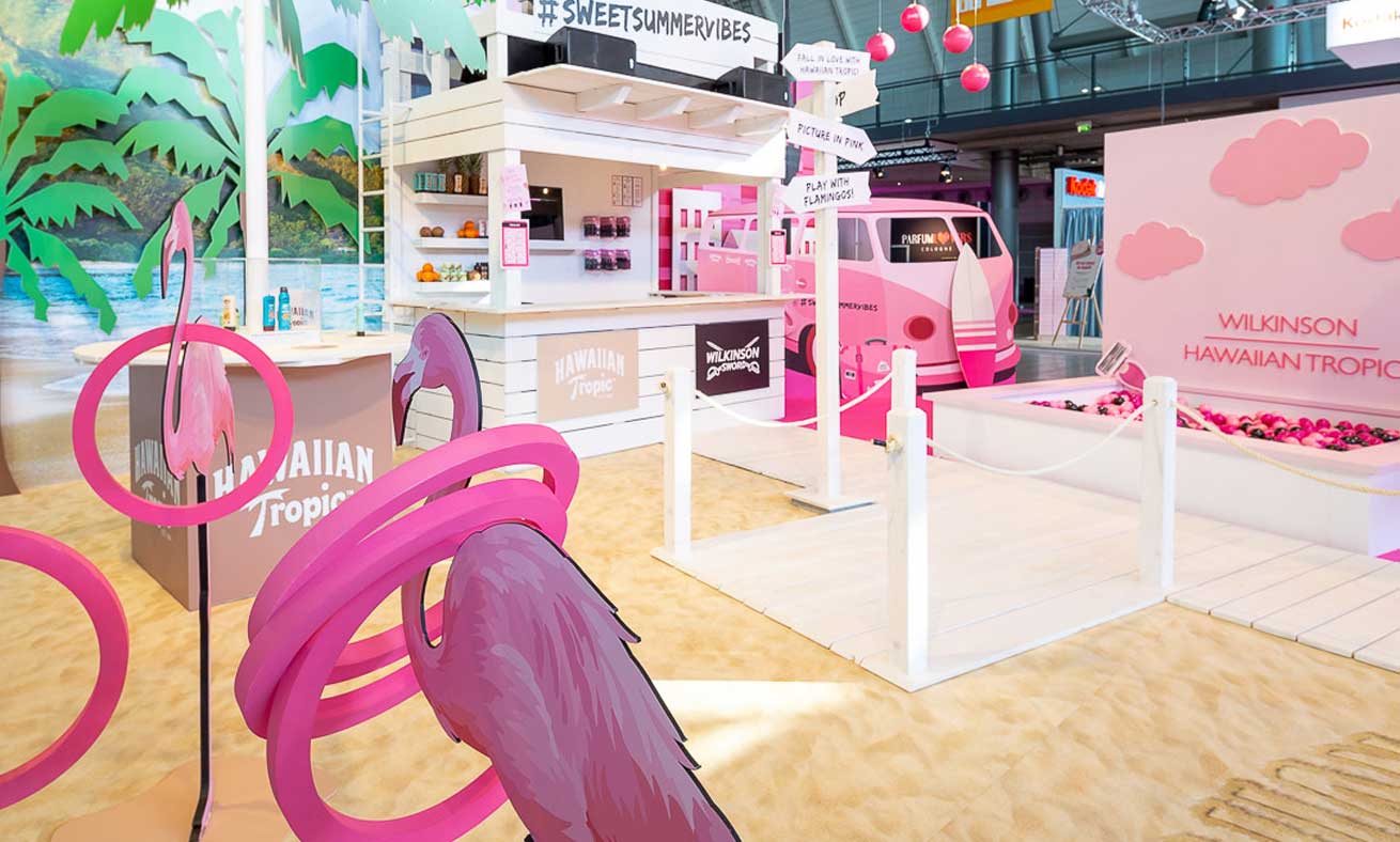 Tropic Beach! Wir haben beide Markenwelten zu einem Stand verbunden - coole Instagram Hotspots inklusive.
