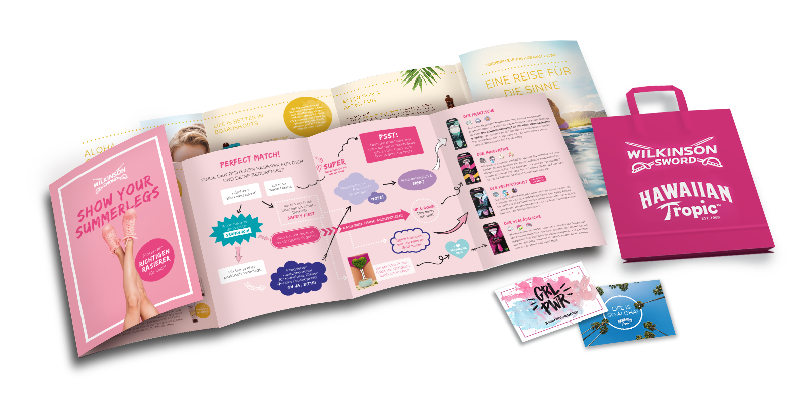 Schon zum zweiten Mal konnten wir mit der Gesamtkonzeption für einen GLOW Messestand überzeugen. Unser wichtigstes To-do: die Welten von Hawaiian Tropic & Wilkinson Female harmonisch zu verbinden. Neben der Gestaltung des Stands haben wir auch sämtliche Materialien ausgearbeitet.